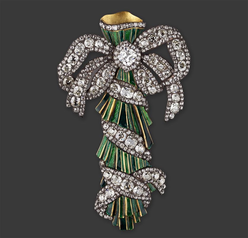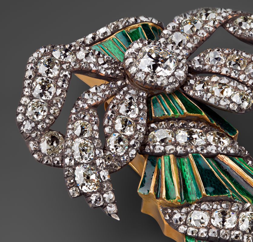 Господствующее положение в ювелирном искусстве этого времени занял бриллиант. Украшения второй половины XVIIIвека отличает стремление ювелиров использовать в своих работах лишь светлые камни, оправленные в неизменное серебро, чтобы сохранить их бесцветность и чистоту. Предпочтение, отдаваемое белым бриллиантам, объяснялось тем, помимо изменчивой моды, что мастера уже в совершенстве владели техникой огранки и могли подчеркнуть красоту алмаза. Не случайно этот период в истории русского ювелирного искусства принято называть «веком бриллианта».