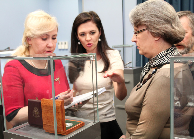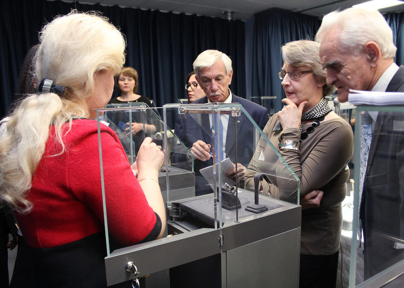 Члены жюри проводят коллегиальную оценку работ участников конкурса на закрытом заседании в новом выставочном зале Гохрана России: